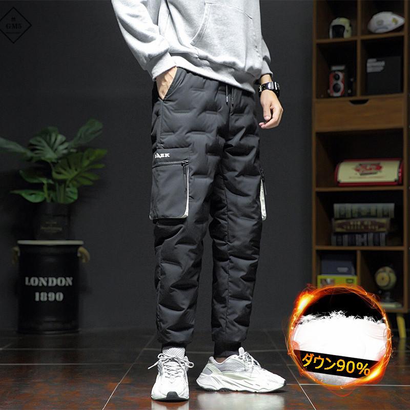 ダウンパンツメンズ 超目玉 冬 ダウン90 防寒 カーゴパンツ ウエストゴム カジュアルパンツ 防風防寒 暖かいパンツ 秋冬
